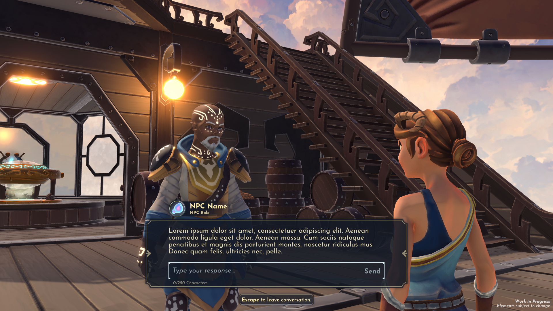 The UI design started with establishing a look that would complement the game’s world but not take away from the ease of finding the information required. So, a simple yet decorative UI style was agreed upon with the Art Director. After that, it was just a matter of applying it to the wireframes!